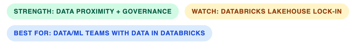 Unity Catalog governance: Every agent, tool, and data access point governed through the same catalog that manages the rest of your data estate.